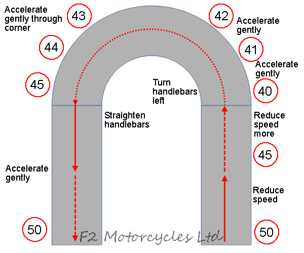 A sidecar combination is not symmetric so turning left is not the same as turning right. The most basic part of riding is to understand what should and should not happen BEFORE you try and ride it. When you accelerate all the power is delivered through the rear wheel which is on the right of the vehicle so the vehicle will be getting pushed forward and to the left. When you close the throttle on the bike, only the bike will slow down so the vehicle will be pushed to the right. The trick to riding one is to use this left and right push to help you. So on left hand corners go in very slowly, turn the bars to the left and accelerate slightly to drive the bike round the sidecar. On right hand corners go in slightly faster then seems natural, turn the bars to the right and roll the throttle off slightly allowing the sidecar to swing round the outside of the bike. Most combinations can shake the bars either at a certain speed or due to some random road surface bump, be prepared for it but don't be scared of it. Nearly every handlebar shake can be cured by leaning forward slightly to add weight to the bars. If you only pick up one tip from this page it is this. You should feel the pressure of the bars in the palms of your hands and never in your fingers.